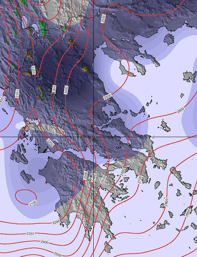 Στον χάρτη με γαλάζιο είναι η βροχή και με πράσινο-καφέ χιόνι.