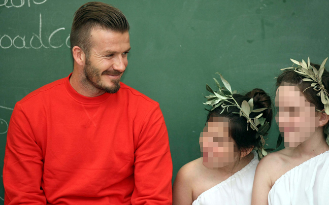 Ο άσος του αγγλικού ποδοσφαίρου, ο οποίος βρίσκεται στην Αθήνα από χθες, λόγω της παράδοσης της Φλόγας για τους Ολυμπιακούς Αγώνες του Λονδίνου, έγινε δεκτός με ενθουσιασμό από τους μαθητές, οι οποίοι του πρόσφεραν κλαδιά ελιάς, φωτογραφήθηκαν και συνομίλησαν μαζί του.
