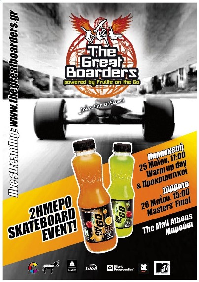 Η πλατφόρμα αθλητικών events «The Great Boarders» powered by Frulite OntheGo υπόσχεται να ανεβάσει την αδρεναλίνη στο maximum με το διήμερο skateboard event, προσκαλώντας κοινό και fans του αθλήματος στο The Mall Athens.
