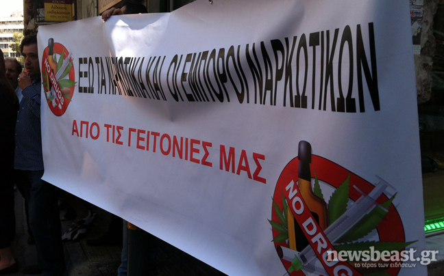 Κλειστή είναι αυτήν την ώρα η Σόλωνος στο ύψος της Εμμανουήλ Μπενάκη από κατοίκους της περιοχής που διαμαρτύρονται για το εμπόριο ναρκωτικών που γίνεται στην περιοχή τους.