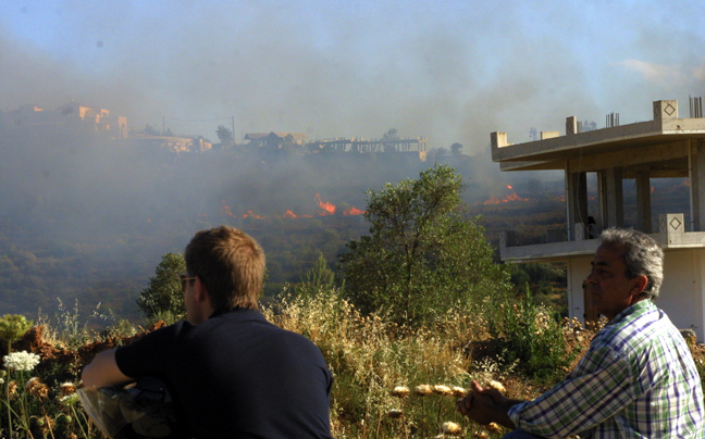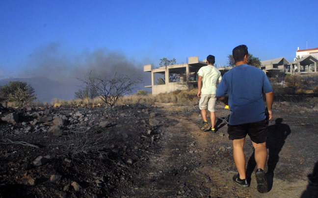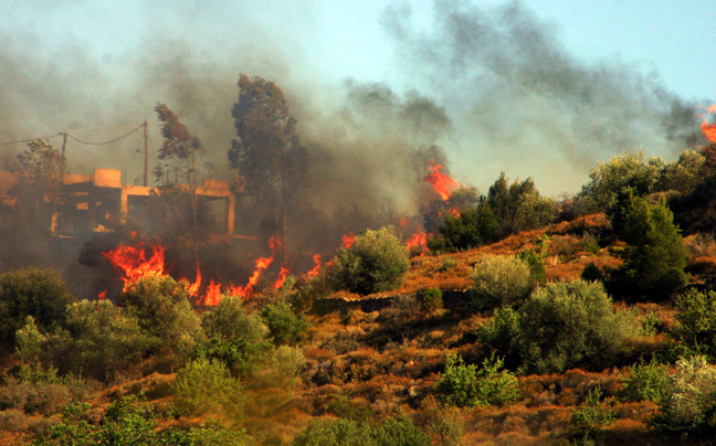 Μέχρι στιγμής έχουν αποτεφρωθεί περισσότερα από 2.000 στρέμματα καλλιεργειών και χορτολιβαδικής έκτασης. Στ σημείο επιχειρούν 28 πυροσβέστες με 14 οχήματα.
