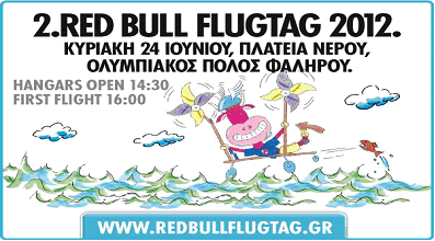 Σαράντα περίπου ομάδες, θα ριχτούν στη μάχη διεκδικώντας μοναδικά έπαθλα! Απόσταση Πτήσης – Δημιουργικότητα – Σκηνική Παρουσία: αυτά μόνο μετράνε στην Ημέρα Πτήσης! Όποιος έχει εφευρετικό πνεύμα και αρκετό θάρρος, μπορεί να γίνει ένας από τους τολμηρούς «πιλότους» που θα πάρουν φόρα από τη ράμπα του Red Bull Flugtag, θα πετάξουν πάνω από τη θάλασσα του Φαλήρου και στη συνέχεια θα βουτήξουν θεαματικά στα νερά του. Κριτές-έκπληξη, ειδικοί στις πτήσεις, στον αθλητισμό ή στο στυλ θα αξιολογήσουν τις ομάδες και τα οχήματά τους.