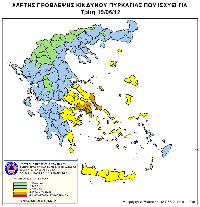Πολύ υψηλός κίνδυνος πυρκαγιάς (κατηγορία κινδύνου 4) προβλέπεται για τις Περιφερειακές Ενότητες: