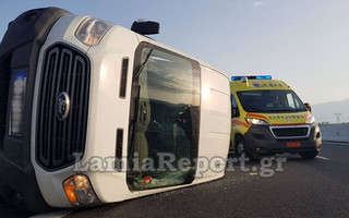 Έσκασε το λάστιχο και το βανάκι ανατράπηκε στο οδόστρωμα