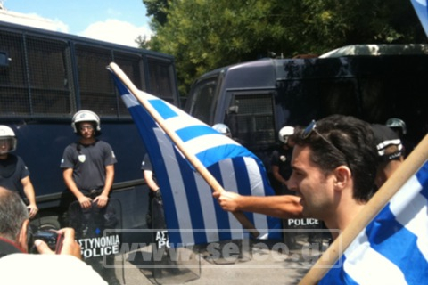 Όπως αναφέρει το seleo.gr, νωρίτερα επικράτησε ένταση έξω από το Προξενείο όταν Κύπριοι φοιτητές επιχείρησαν να σπάσουν τον αστυνομικό κλοιό και να πλησιάσουν το Προξενείο.