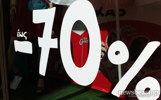 Οι καταναλωτές με τα εισοδήματά τους συνεχώς να συρρικνώνονται αποφεύγουν ακόμα και τη βόλτα στα καταστήματα, όπου οι εκπτώσεις ξεκινούν από 10% και φτάνουν ως το 70%, σε όλα τα είδη.
