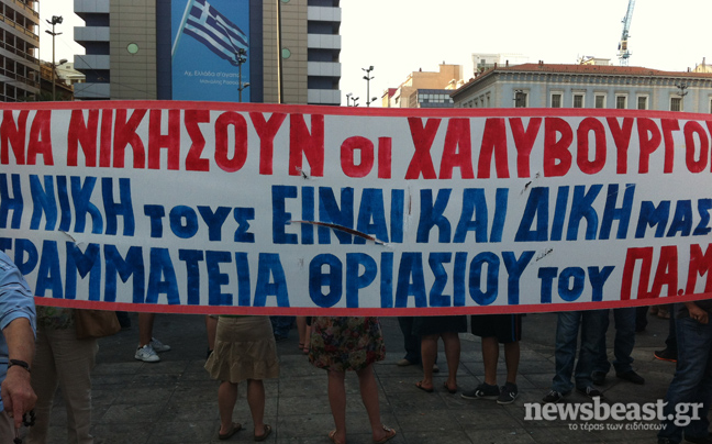 Συγκέντρωση αλληλεγγύης και πορεία του σωματείου των εργαζομένων στην Ελληνική Χαλυβουργία πραγματοποιείται αυτή την ώρα στο κέντρο της Αθήνας.