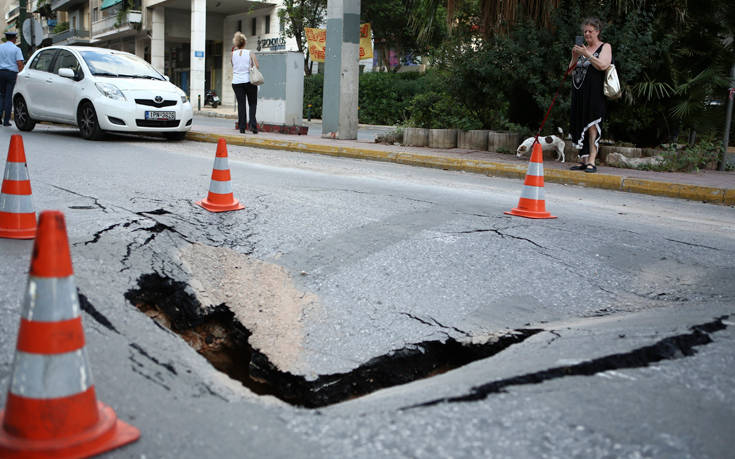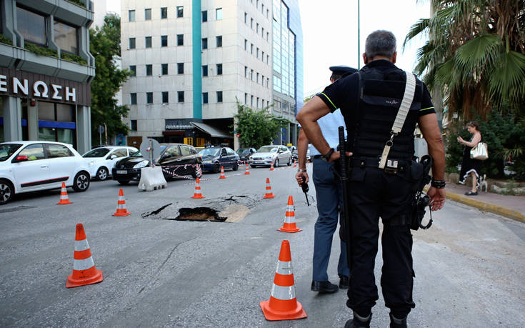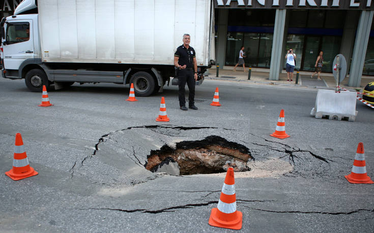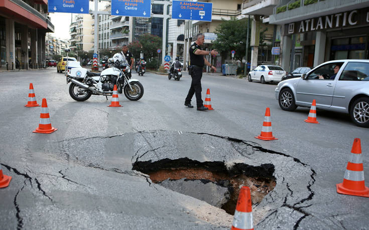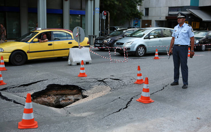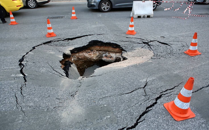 Καθίζηση βάθους περίπου 2 μέτρων σημειώθηκε το απόγευμα στη λεωφόρο Μεσογείων, στη διασταύρωση με την οδό Ζαγοράς, στους Αμπελόκηπους, η οποία αποδίδεται στη χθεσινή κακοκαιρία.