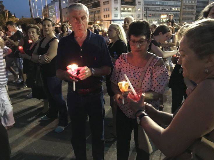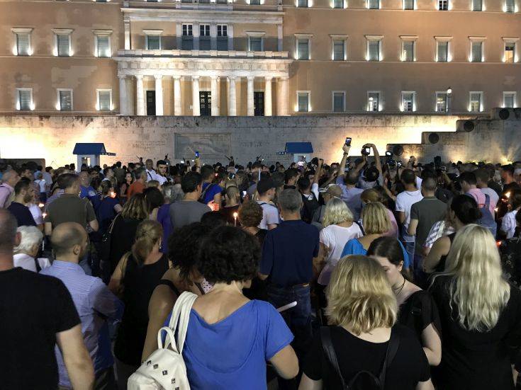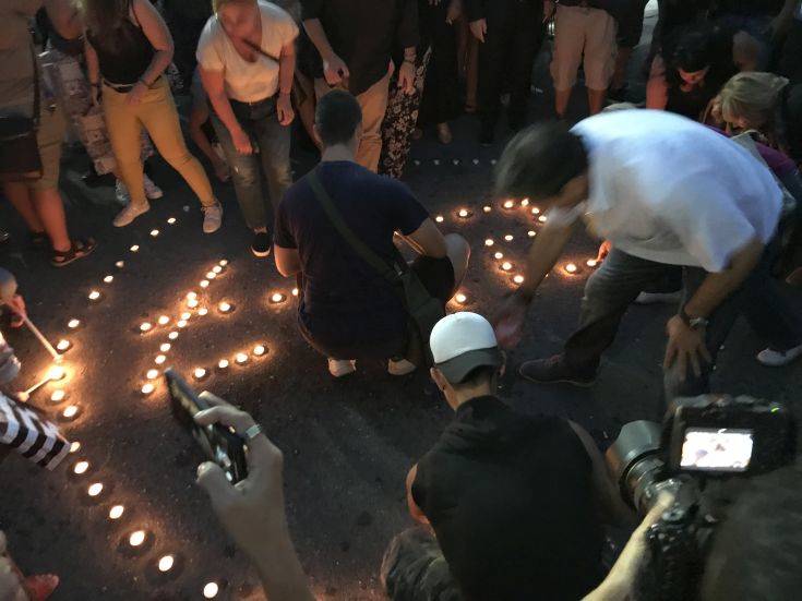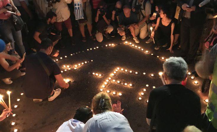Συγκέντρωση στη μνήμη των θυμάτων της φονικής πυρκαγιάς στην ανατολική Αττική πραγματοποιείται αυτήν την ώρα στην πλατεία Συντάγματος. Περίπου 200 άνθρωποι βρίσκονται αυτήν την ώρα στην πλατεία, και έχουν σχηματίσει με ρεσώ την ημερομηνία 23/7, που ήταν η μέρα τις τραγωδίας στο Μάτι. Φωτορεπορτάζ: Γιάννης Κέμμος