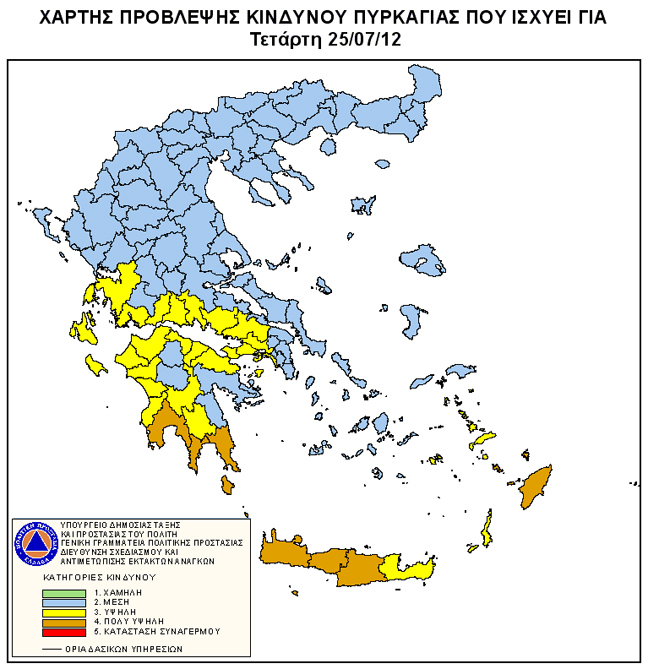 Αυξημένος είναι αύριο ο κίνδυνος πυρκαγιάς σύμφωνα με το Χάρτη Πρόβλεψης Κινδύνου Πυρκαγιάς που εκδίδει η Γενική Γραμματεία Πολιτικής Προστασίας.
