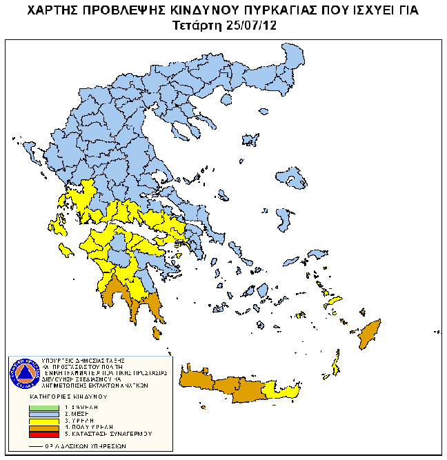 Πολύ υψηλός κίνδυνος πυρκαγιάς (κατηγορία κινδύνου 4) προβλέπεται για σήμερα, σύμφωνα με τον Χάρτη Πρόβλεψης Κινδύνου Πυρκαγιάς που εκδίδει η Γενική Γραμματεία Πολιτικής Προστασίας, για τις Περιφερειακές Ενότητες…