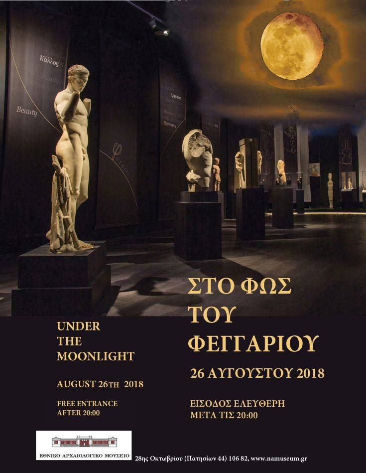 Με ανοιχτές τις πύλες του και ελεύθερη είσοδο για το κοινό από τις 20:00 έως τις 24:00, το Εθνικό Αρχαιολογικό Μουσείο θα υποδεχθεί την ωραιότερη πανσέληνο του χρόνου την Κυριακή 26 Αυγούστου. Οι φετινές εκδηλώσεις είναι αφιερωμένες στην έννοια του Ωραίου, προσεγγίζοντάς τη με ιδιαίτερες αφηγήσεις, μουσική και αναγνώσεις.