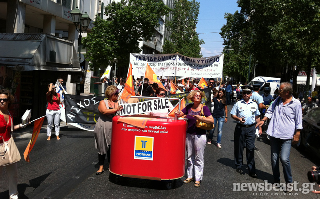 Ξεκίνησε η πορεία διαμαρτυρίας προς τη Βουλή των εργαζομένων στο Ταχυδρομικό Ταμιευτήριο.