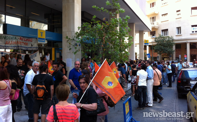 Οι εργαζόμενοι στο ΤΤ ενώθηκαν με διαμαρτυρόμενους της Αγροτικής Τράπεζας, οι οποίοι τάσσονται κατά της πώλησης του «υγιούς» τμήματος της Τράπεζας στην Πειραιώς.