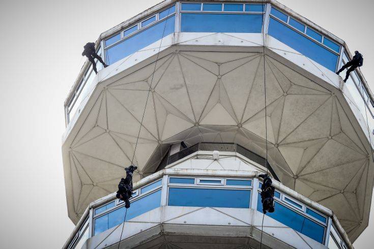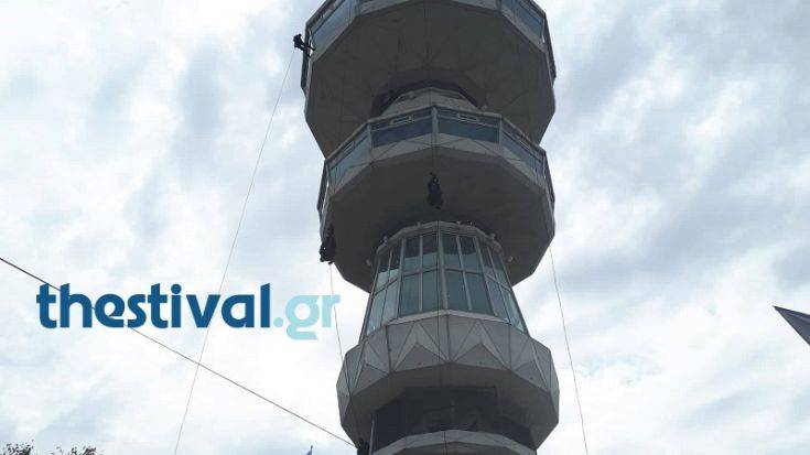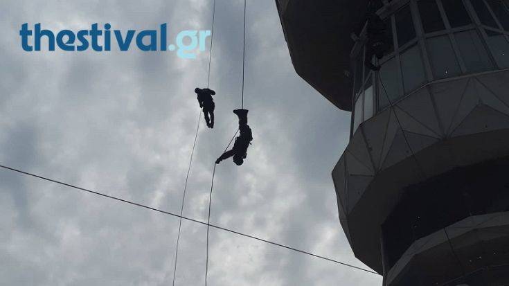 Ένα μοναδικό θέαμα χάρισαν στους επισκέπτες της 83ης Διεθνούς Έκθεσης Θεσσαλονίκης άνδρες της Ειδικής Κατασταλτικής Αντιτρομοκρατικής Μονάδας, οι οποίοι έκαναν καταρρίχηση από τον Πύργο του ΟΤΕ. Του ανταποκριτή μας από το thestival.gr στη Θεσσαλονίκη Στελέχη της ΕΚΑΜ έκαναν καταρρίχηση από ύψος 60 μέτρων χρησιμοποιώντας σκοινιά τραβώντας τα βλέμματα όλων. Την επίδειξη παρακολούθησαν μεταξύ άλλων η υπουργός Προστασίας του Πολίτη και η υφυπουργός, Κατερίνα Παπακώστα. Δείτε φωτογραφίες και βίντεο από την εντυπωσιακή καταρρίχηση: