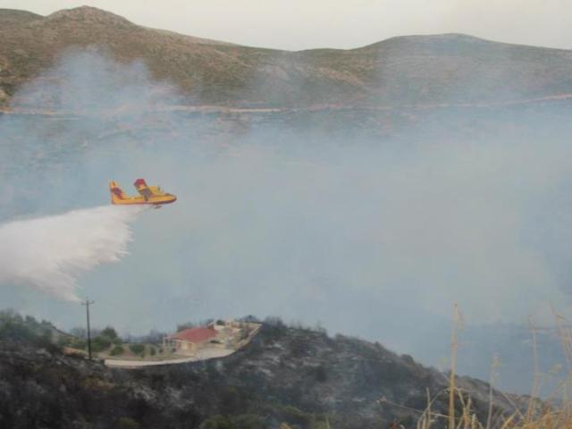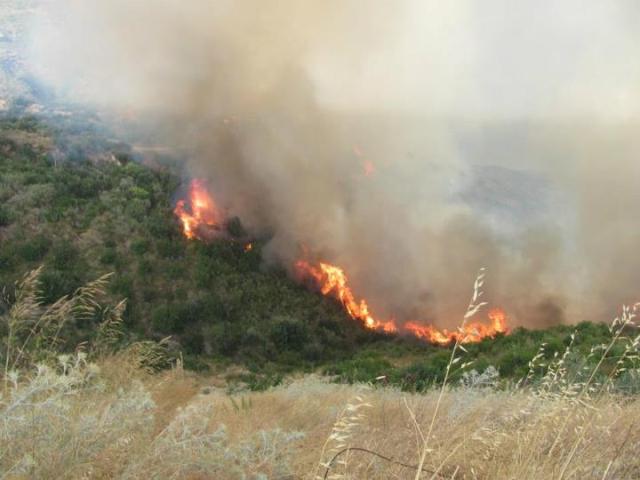 Η φωτιά, που ξεκίνησε απο τον Κατελειό και πολύ γρήγορα ανέβηκε στο Κρεμμύδι, έκαψε 700 στρέμματα αγροτικής γης και 800 στρεμματα δασικής έκτασης.