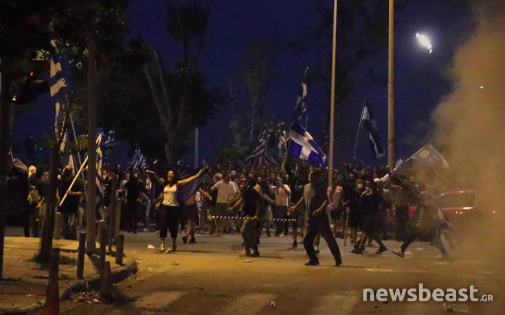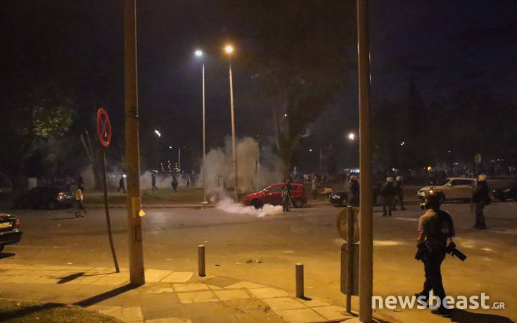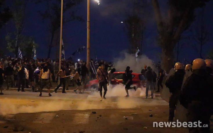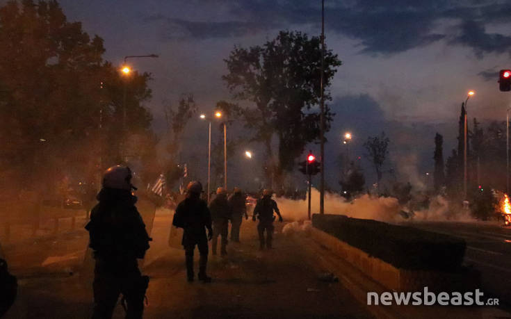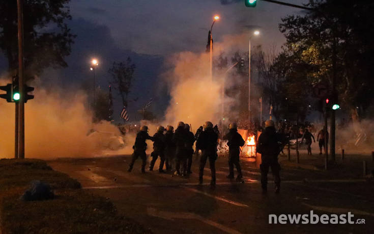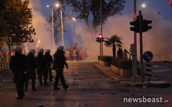 Συνεχίζονται τα επεισόδια στο κέντρο της Θεσσαλονίκης, στην περιοχή γύρω από το δημαρχιακό μέγαρο, στη διάρκεια των συλλαλητηρίων που βρίσκονται σε εξέλιξη, στο περιθώριο της 83ης ΔΕΘ. Αποστολή του newsbeast στη Θεσσαλονίκη: Γαβριήλ Φιλιππόπουλος, Γιάννης Κέμμος Επίκεντρο των επεισοδίων είναι αυτήν την στιγμή η λεωφόρος Μεγάλου Αλεξάνδρου, περίπου 300 μέτρα μακριά από το δημαρχείο της πόλης Υπενθυμίζεται ότι επεισόδια σημειώθηκαν νωρίτερα, μπροστά στο δημαρχείο της Θεσσαλονίκης, μεταξύ διαδηλωτών που συμμετέχουν στη συγκέντρωση ενάντια στη συμφωνία των Πρεσπών και ανδρών της Αστυνομίας, λίγο πριν την άφιξη του Αλέξη Τσίπρα στο Συνεδριακό Κέντρο για την ομιλία του. Δείτε βίντεο και φωτογραφίες από το newsbeast.gr: