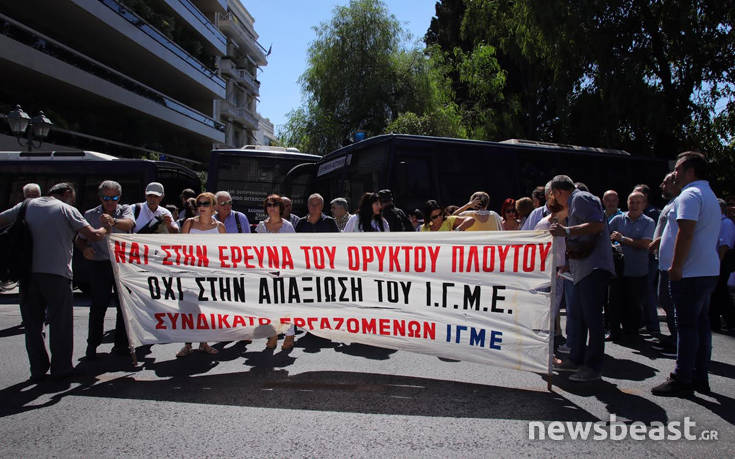 Συγκέντρωση διαμαρτυρίας στη συμβολή της λεωφόρου Βασιλίσσης Σοφίας με την οδό Ηρωδου Αττικού κάνουν αυτή την ώρα εργαζόμενοι του Ινστιτούτου Γεωλογικών και Μεταλλευτικών Ερευνών.