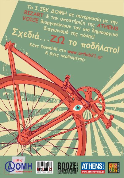Στείλε το έργο σου στο www.artlab21.gr, κατηγορία νέοι καλλιτέχνες μέχρι τις 10 Σεπτεμβρίου, και δες το να αποτελεί μέρος της εικαστικής έκθεσης που θα γίνει στον πολυχώρο Booze Cooperativa από τις 15 μέχρι και τις 22 του ίδιου μήνα, που είναι και η Ευρωπαϊκή Ημέρα Χωρίς Αυτοκίνητο!