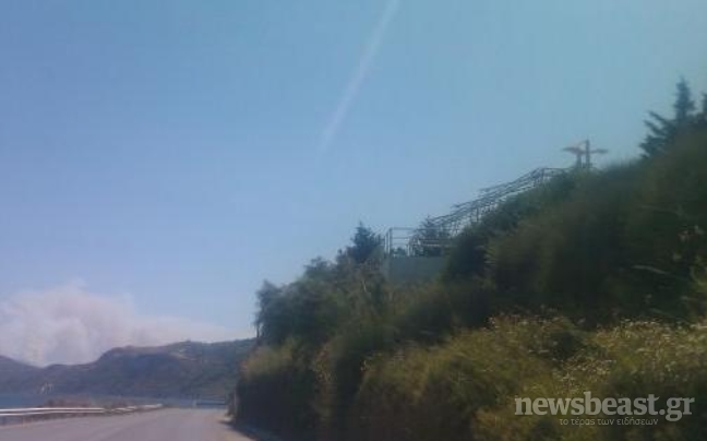 Στην περιοχή επιχειρούν 32 πυροσβέστες με 14 οχήματα, ένα αεροσκάφος και ένα ελικόπτερο.
