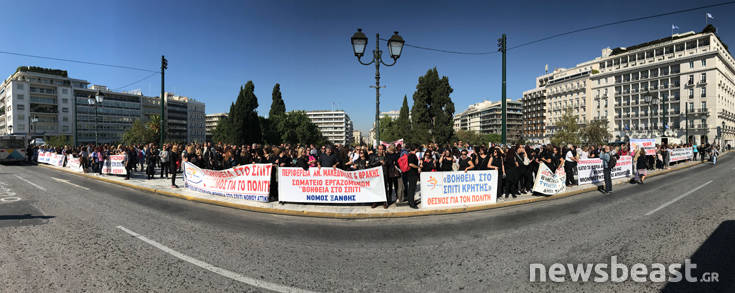 Αυτήν την ώρα, οι απεργοί κάνουν συγκέντρωση διαμαρτυρίας στην πλατεία Συντάγματος.