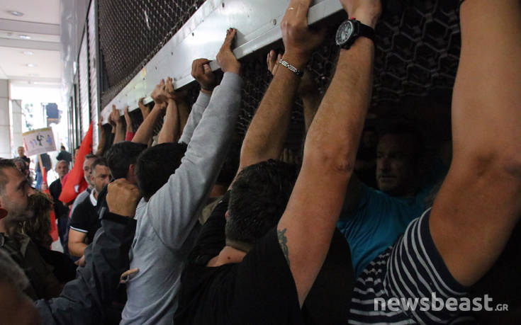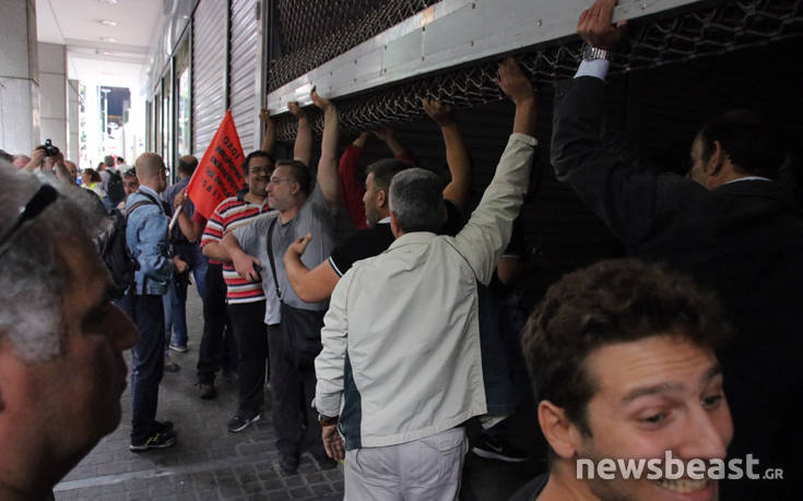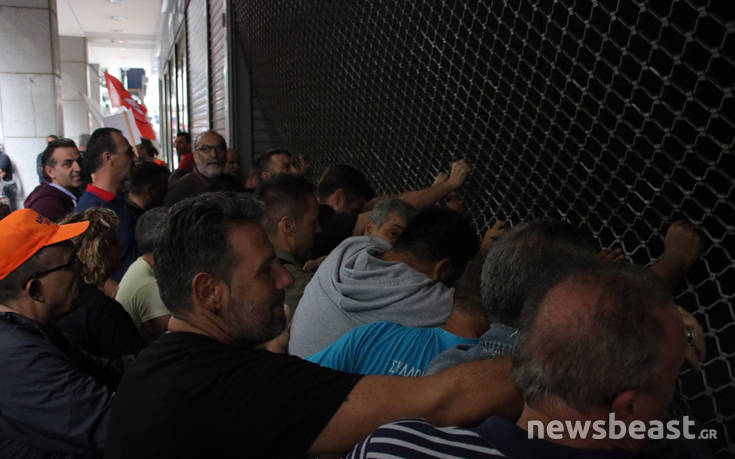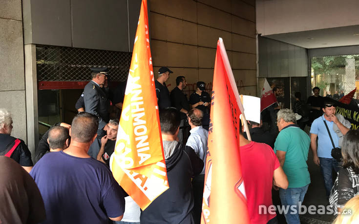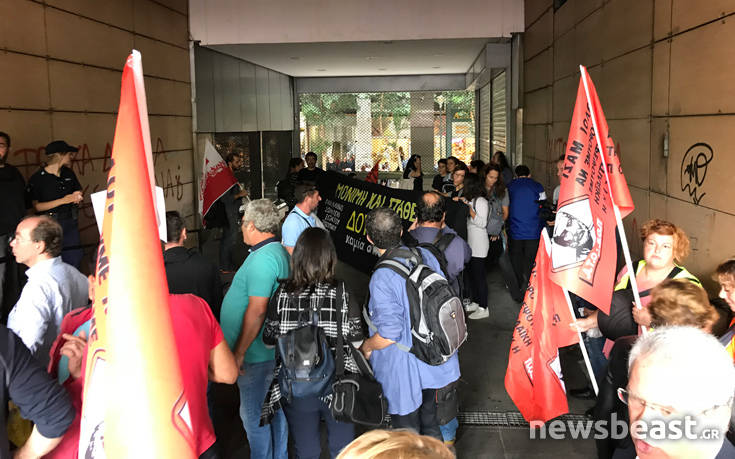 Τα ρολά της στοάς όπου βρίσκεται το υπουργείο Οικονομικών, στην οδό Νίκης, σήκωσαν μέλη της ΠΟΕ – ΟΤΑ και εκπρόσωποι των Ομοσπονδιών, που βρίσκονται σε 24ωρη απεργία σήμερα, διαμαρτυρόμενοι κυρίως για τα Βαρέα και Ανθυγιεινά. Η μικρή αστυνομική δύναμη που βρίσκεται στο σημείο εμποδίζει την είσοδο κι άλλων στο υπουργείο, ενώ η κατάσταση είναι ήρεμη. Δείτε τις φωτογραφίες και το βίντεο του newsbeast.gr