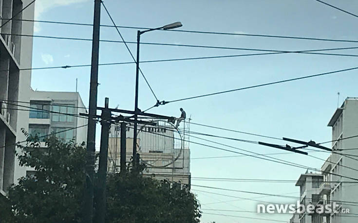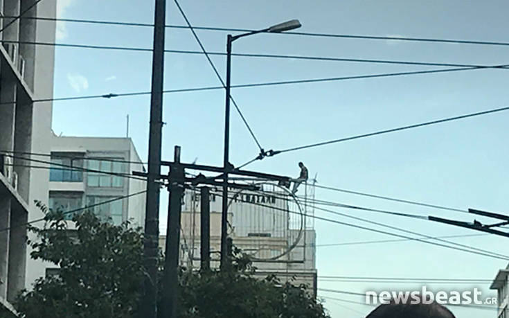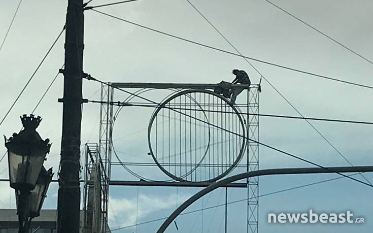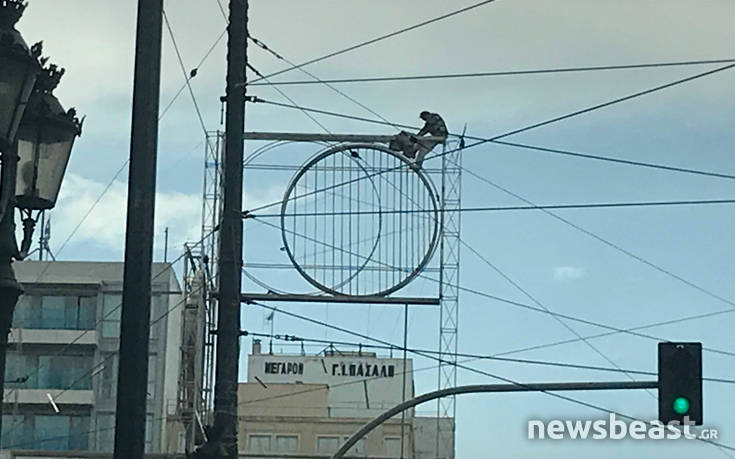 Ένας άνδρας αγνώστων στοιχείων έχει ανέβει στο γλυπτό που βρίσκεται στην πλατεία Ομονοίας και απειλεί να αυτοκτονήσει.
