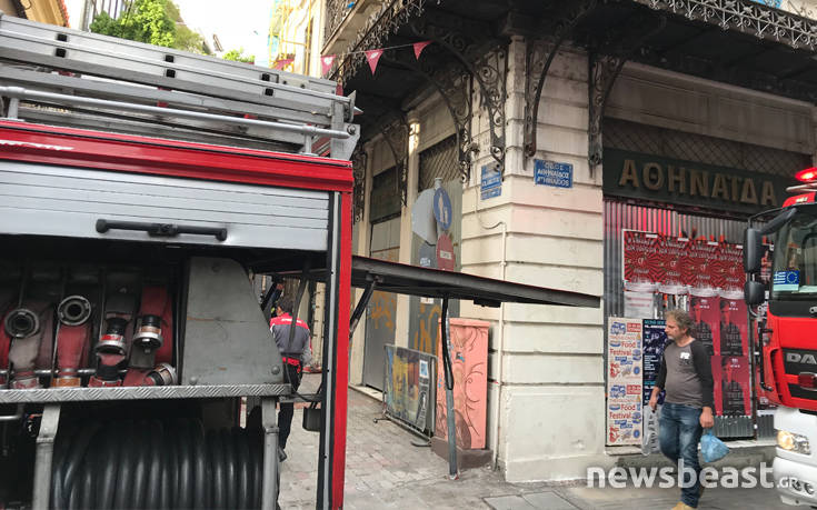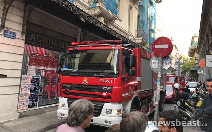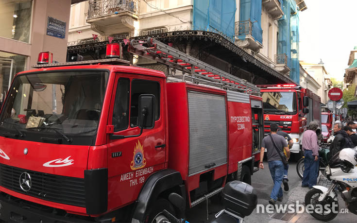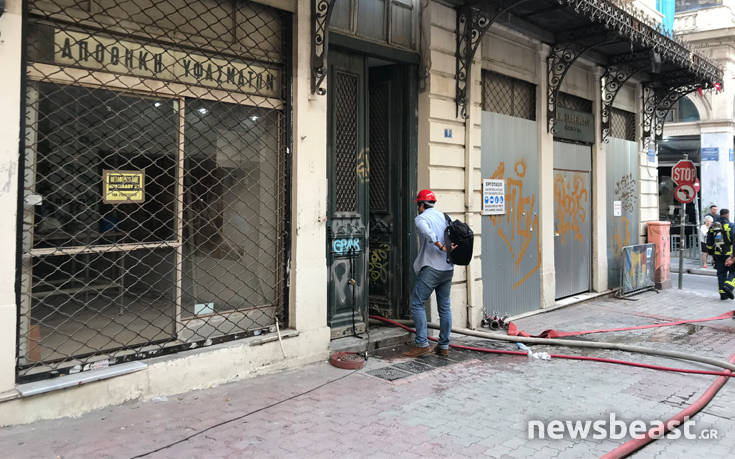 Φωτιά ξέσπασε σε ισόγειο χώρο νεοκλασικού κτιρίου στο κέντρο της Αθήνας κοντά στην πλατεία Καπνικαρέας.