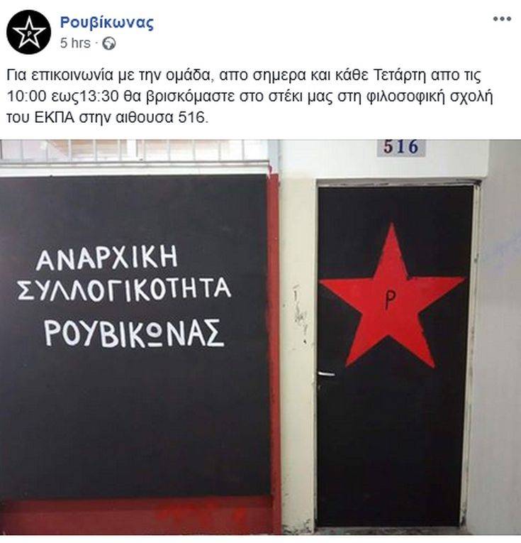 Με ανάρτηση της ομάδας στο facebook ο Ρουβίκωνας ενημερώνει ότι αποκτά στέκι στη Φιλοσοφική Σχολή Αθηνών.