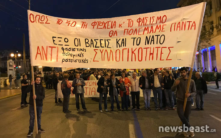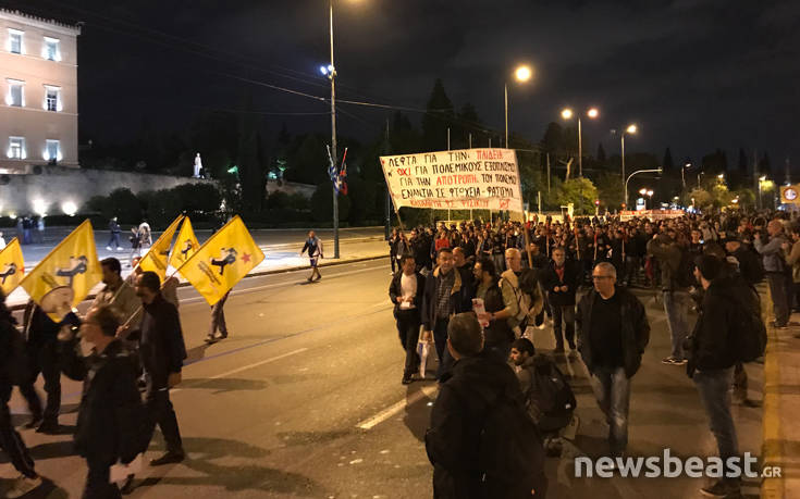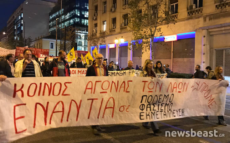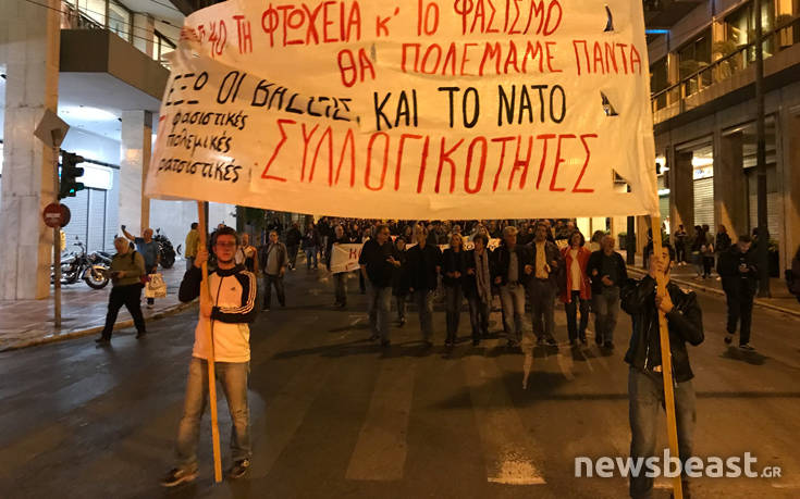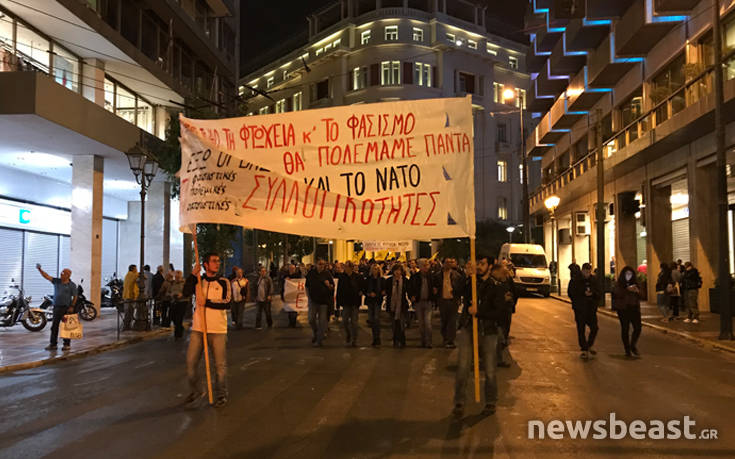 Πορεία στο κέντρο της Αθήνας πραγματοποιούν αντιφασιστικές και αντιπολεμικές συλλογικότητες και οργανώσεις της Αριστεράς.