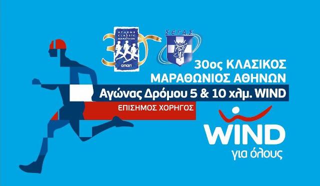 Για 2η χρονιά θα βρεθεί στο πλευρό του ΣΕΓΑΣ η WIND Ελλάς, αναλαμβάνοντας Επίσημος Χορηγός του Κλασικού Μαραθωνίου Αθηνών (ΚΜΑ) όπως και Ονομαστικός Χορηγός των Αγώνων Δρόμου 5 &10 χλμ. Με κύριο μήνυμα το επιτυχημένο «Ένας Αγώνας Για Όλους», η WIND θα προσπαθήσει και φέτος να φέρει τη διοργάνωση ακόμη πιο κοντά στην ελληνική κοινωνία.