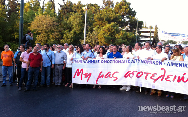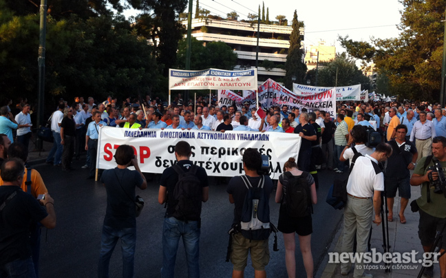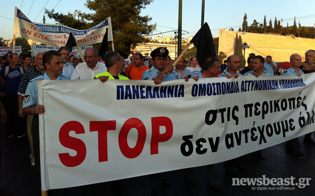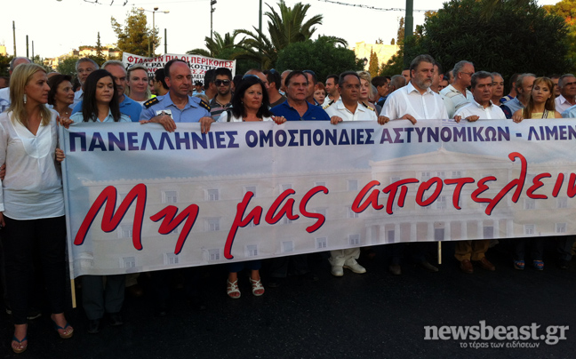Με βουλευτές της αντιπολίτευσης να βρίσκονται στην κεφαλή της, ξεκίνησε η πορεία των ενστόλων αστυνομικών, πυροσβεστών και λιμενικών, που είχαν συγκεντρωθεί από νωρίς στο Καλλιμάρμαρο Στάδιο, σε ένδειξη διαμαρτυρίας για τις προωθούμενες περικοπές στα ειδικά μισθολόγια.