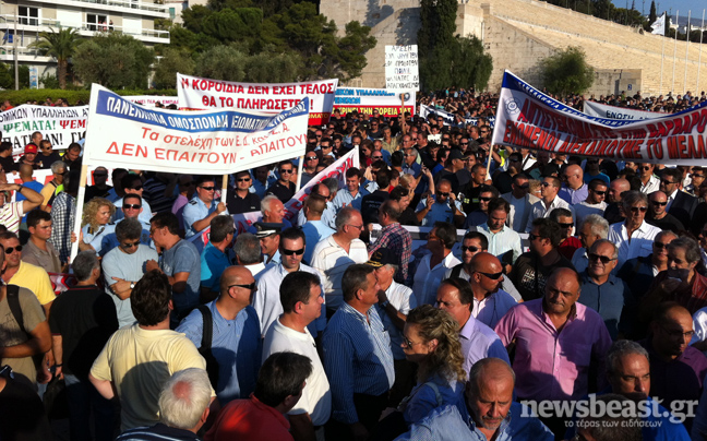 Οι διαδηλωτές έψαλαν τον εθνικό ύμνο και – μέσω της οδού Βασ. Σοφίας που έχει κλείσει και στα δύο ρεύματα κυκλοφορίας – πορεύονται αρχικά προς το υπουργείο Οικονομικών, όπου θα σταθούν για λίγο φωνάζοντας συνθήματα διαμαρτυρίας και στη συνέχεια προς τη Βουλή όπου θα καταλήξει η πορεία και θα επιδώσουν ψήφισμα με τα αιτήματά τους.