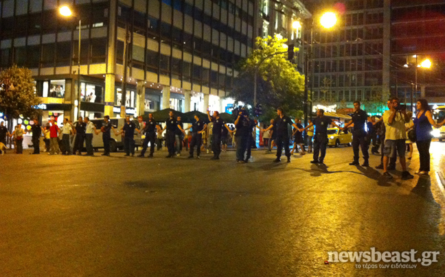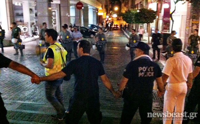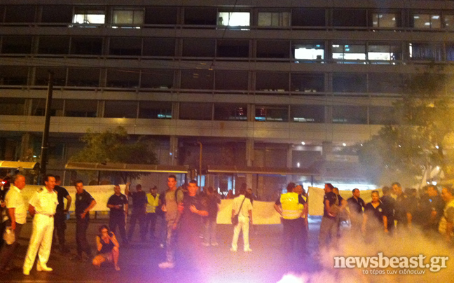 Λίγο μετά την ολοκλήρωση της πορείας των ένστολων, η οποία κατέληξε στη Βουλή, ορισμένοι από τους συμμετέχοντες λιμενικούς παρέμειναν έξω από το υπουργείο Οικονομικών, όπου είπαν ότι θα διανυκτερεύσουν. Εκεί έφτιαξαν μία ανθρώπινη αλυσίδα.