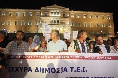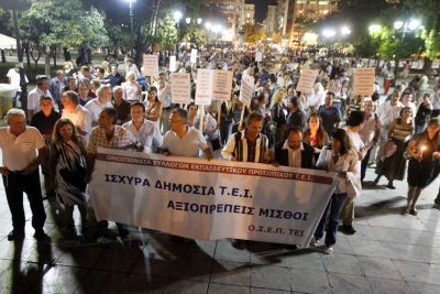 Περίπου χίλια άτομα από τον χώρο της ανώτατης εκπαίδευσης συμμετείχαν σε συγκέντρωση που διοργάνωσε στην πλατεία Συντάγματος η Ομοσπονδία Καθηγητών Πανεπιστημίου (ΠΟΣΔΕΠ) σε ένδειξη διαμαρτυρίας για τις περικοπές στις απολαβές τους.