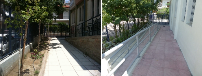 • Ανακατασκευή της εξωτερικής ράμπας πρόσβασης ΑΜΕΑ στο ισόγειο του και κατασκευή εκ νέου ράμπας, για άνετη πρόσβαση σε κάθε χώρο του σχολικού κτιρίου