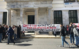 Σε παράσταση διαμαρτυρίας έξω από το δημαρχείο Αθηνών στην πλατεία Κοτζιά προχώρησαν οι χειροτέχνες μικροπωλητές του Θησείου, οι οποίοι εναντιώνονται στην αιφνίδια απομάκρυνσή τους από τον πεζόδρομο της Αποστόλου Παύλου όπου εδώ και χρόνια στήνουν τους πάγκους με το εμπόρευμα τους.