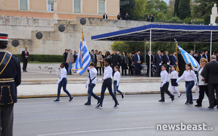 Ολοκληρώθηκε η μαθητική παρέλαση για την επέτειο της 28ης Οκτωβρίου, στο κέντρο της Αθήνας. Στην παρέλαση συμμετείχαν όλα τα σχολεία της Α’ Αθηνών (δημοτικά, γυμνάσια και λύκεια), με τον σημαιοφόρο τους και πέντε παραστάτες το καθένα, η μπάντα της Αστυνομίας, η φιλαρμονική της Κέρκυρας, η ομάδα των Special Olympics, καθώς επίσης και οι πρόσκοποι.