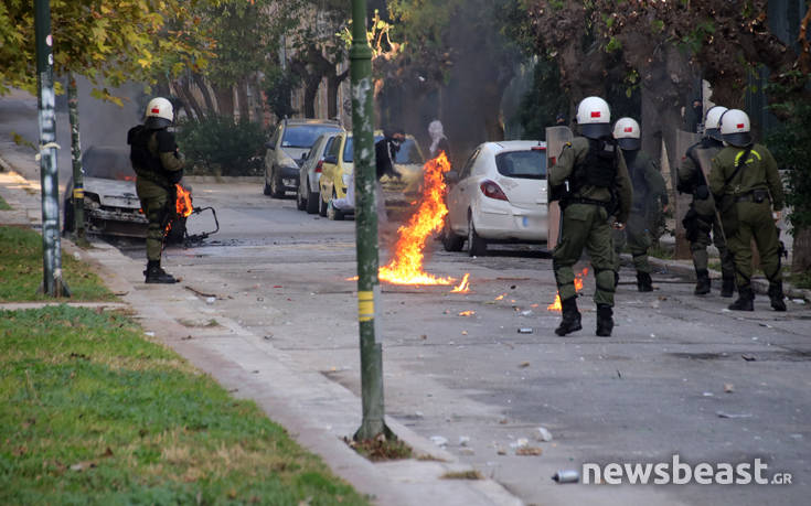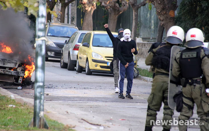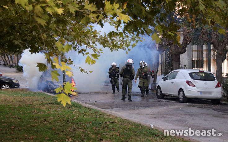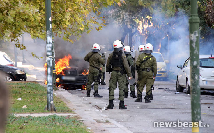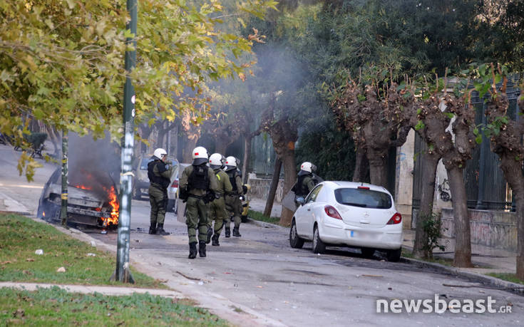 Συνέχεια επεισοδίων στο κέντρο της Αθήνας, έπειτα από αυτά που σημειώθηκαν στο περιθώριο του μαθητικού συλλαλητηρίου, με το σκηνικό πλέον να μεταφέρεται στο Πολυτεχνείο. Νεαροί εμφανίζονται με κουκούλες στην οδό Τοσίτσα και εκτοξεύουν διάφορα αντικείμενα, μεταξύ των οποίων και βόμβες μολότοφ, εναντίον των ανδρών των ΜΑΤ, με αποτέλεσμα να έχει κλείσει η κυκλοφορία στο ρεύμα που περνά μπροστά από το ΕΜΠ. Μάλιστα, ένα αυτοκίνητο στην οδό Τοσίτσα τυλίχτηκε στις φλόγες. Δείτε βίντεο και φωτογραφίες του newsbeast.gr: