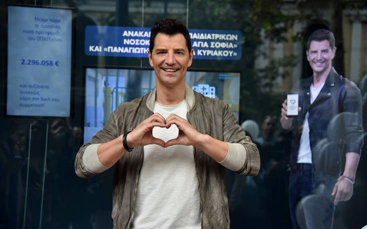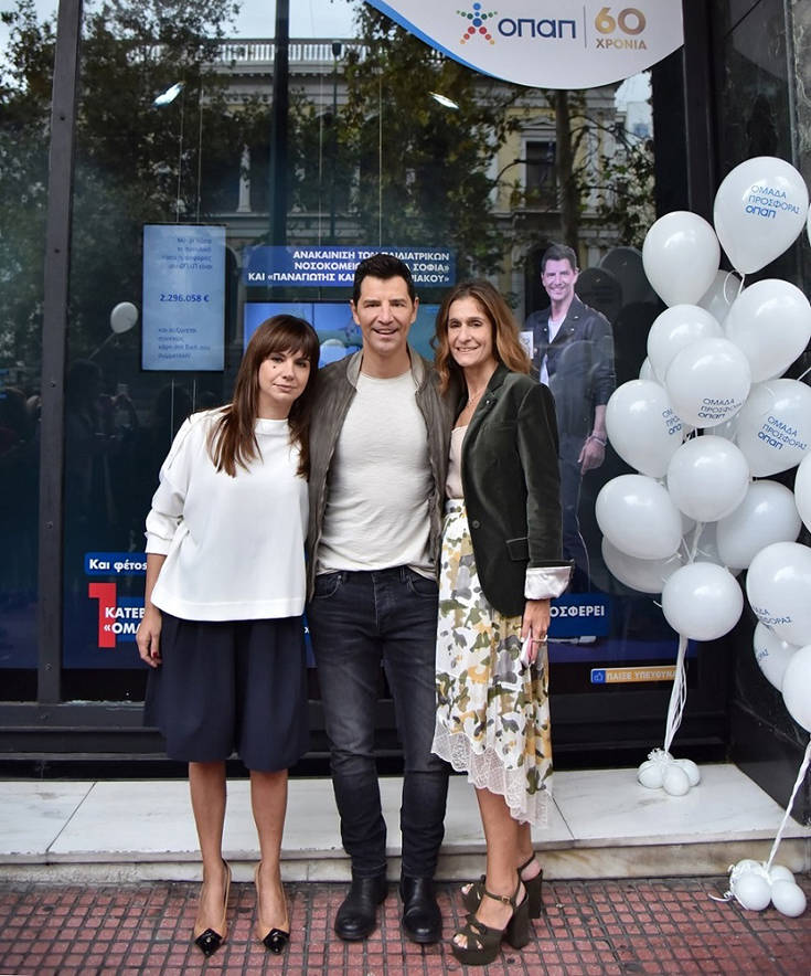O Σάκης Ρουβάς φωτογραφίζεται με μέλη της ομάδας προσφοράς ΟΠΑΠ