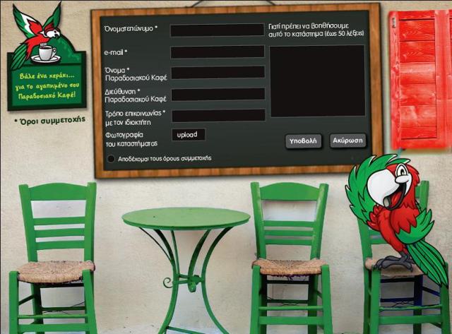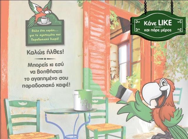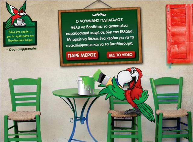 Στην 1η φάση της ενέργειας (17-30 Σεπτεμβρίου), οι φίλοι της σελίδας στο Facebook (www.facebook.com/LoumidisPapagalos) από όλη την Ελλάδα καλούνται, μέσω μιας ειδικής εφαρμογής, να… «Βάλουν ένα χεράκι» και να υποδείξουν το αγαπημένο τους παραδοσιακό καφέ, γράφοντας τον λόγο για τον οποίο αξίζει να υποστηριχθεί και να δεχθεί τις υποστηρικτικές εργασίες που προσφέρει ο Λουμίδης Παπαγάλος. Οι 300 πρώτοι έγκυροι φίλοι που θα υποβάλλουν την πρόταση τους θα κερδίσουν αυτόματα από μια συσκευασία Λουμίδης Παπαγάλος παραδοσιακός.