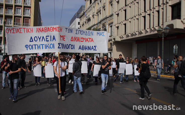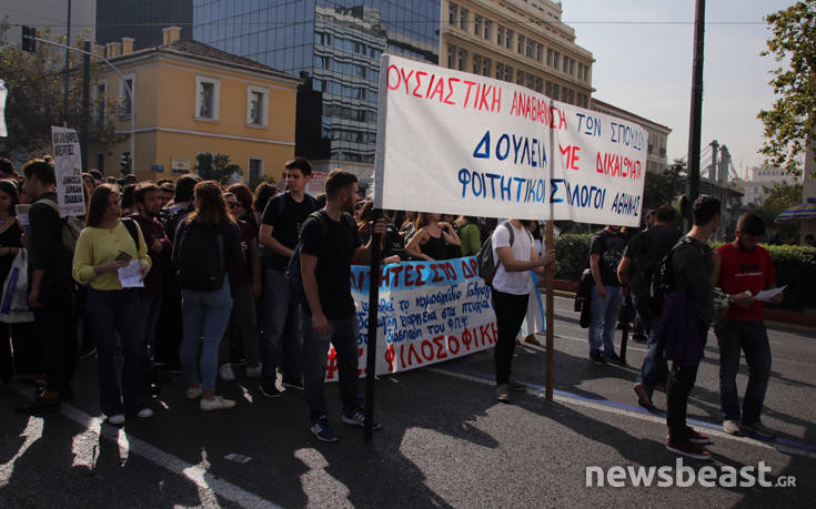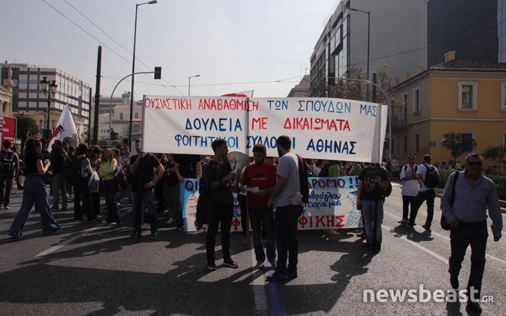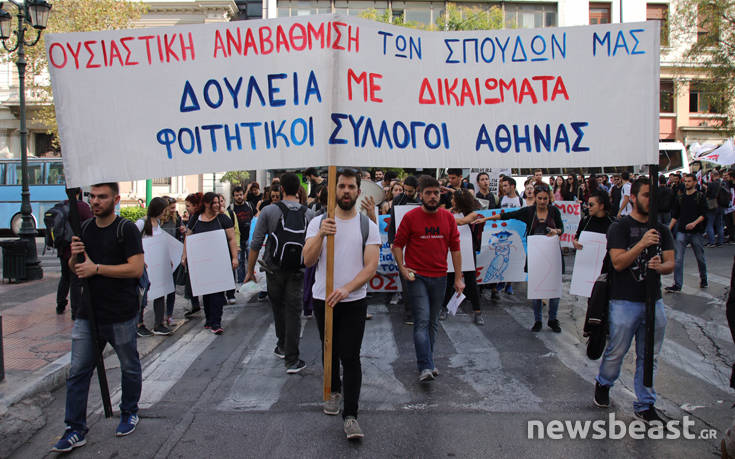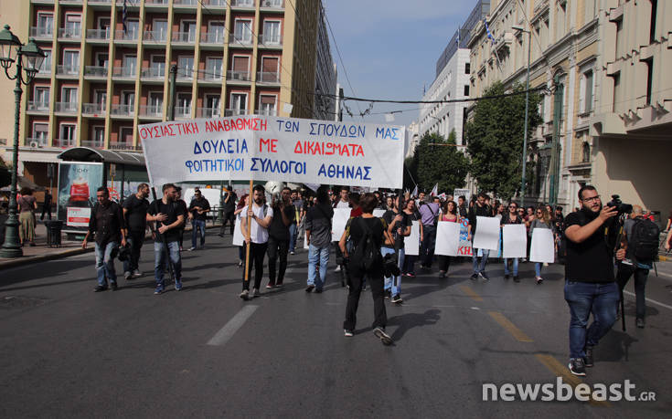 Έπειτα από κάλεσμα που απηύθυναν 83 φοιτητικοί – σπουδαστικοί σύλλογοι της Ελλάδας, αυτήν την ώρα πραγματοποιείται συλλαλητήριο στο κέντρο της Αθήνας, η οποία ξεκίνησε από τα Προπύλαια και στη συνέχεια θα καταλήξει στη Βουλή. Τα βασικά αιτήματα των φοιτητών και των σπουδαστών είναι: