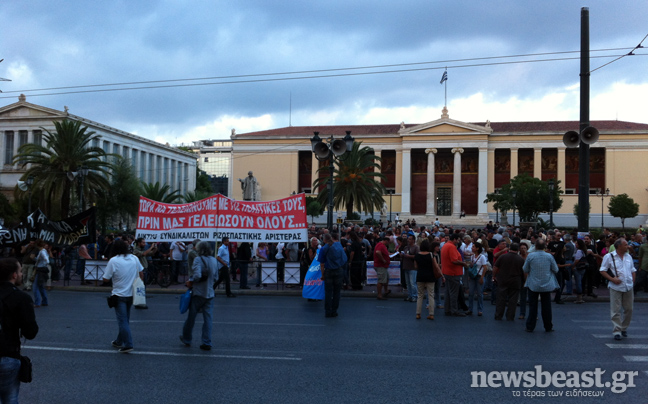 Κλειστή είναι αυτή την ώρα λόγω συγκέντρωσης η οδός Πανεπιστημίου στο ύψος των Προπυλαίων.