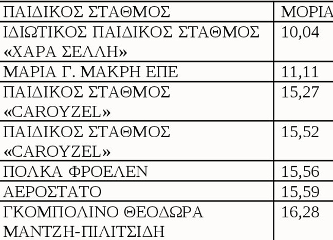 Χαρακτηριστικά ελάχιστα παραδείγματα ακολουθούν στον παρακάτω πίνακα για την περιφέρεια Αττικής για τα μόρια αιτήσεων που εγκρίθηκαν σε ιδιωτικούς παιδικούς σταθμούς: