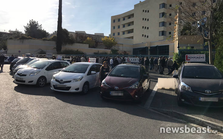 Συγκέντρωση διαμαρτυρίας πραγματοποιούν αυτή την ώρα εκπαιδευτές οδήγησης έξω από το υπουργείο Μεταφορών έχοντας παράλληλα αποκλείσει την είσοδο στους υπαλλήλους του υπουργείου. Οι εκπαιδευτές, που έχουν φέρει συμβολικά και έξι εκπαιδευτικά οχήματα ακριβώς έξω από την είσοδο του υπουργείου, διαμαρτύρονται για την αποχή των εξεταστών οδήγησης του υπουργείου, που ξεπερνά πλέον τον ένα μήνα, με αποτέλεσμα χιλιάδες υποψήφιοι οδηγοί να περιμένουν εδώ και καιρό στην ουρά και να έχει πέσει κατακόρυφα η κίνηση στις σχολές οδηγών.