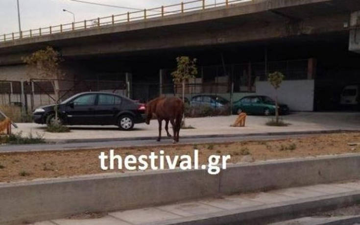 Άλογο έκοβε βόλτες σε δρόμο της Θεσσαλονίκης