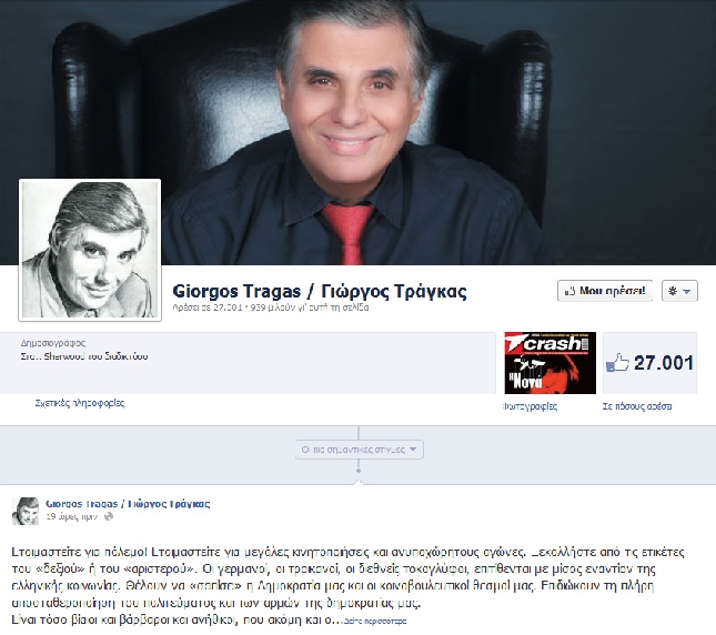 Πυρά κατά των τροικανών, των Γερμανών και των διεθνών τοκογλύφων εξαπολύει μέσα από την προσωπική του σελίδα στο facebook ο Γιώργος Τράγκας.
