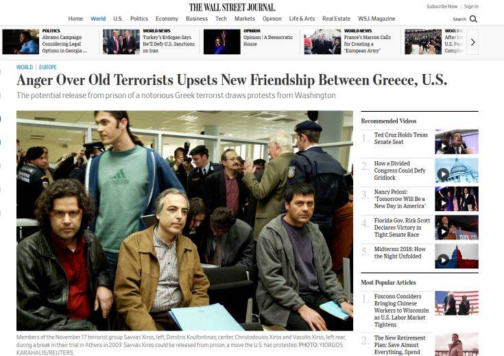 «Η πιθανή απελευθέρωση από την φυλακή ενός διαβόητου Έλληνα τρομοκράτη θα οδηγήσει σε διαμαρτυρίες στις ΗΠΑ, εξετάζοντας τις πρόσφατα στενές σχέσεις της ελληνικής κυβέρνησης με την Ουάσινγκτον», αναφέρει δημοσίευμα της «Wall Street Journal». Συγκεκριμένα, η αρθρογράφος κάνει λόγο για «πιθανότητα να δυναμιτιστεί η νέα εποχή στις ελληνοαμερικανικές σχέσεις» μία πρόωρη αποφυλάκιση Ξηρού ο οποίος «εκμεταλλευόμενος νόμο που πέρασε η κυβέρνηση ΣΥΡΙΖΑ» ζητά να αποφυλακιστεί, επικαλούμενος λόγους υγείας. «Δημόσια αντέδρασαν οι ΗΠΑ πριν καν οι ελληνικές αρχές αναφέρουν αν θα αποφυλακιστεί ο Σάββας Ξηρός», σχολιάζει η WSJ και συνεχίζει παραθέτοντας την δήλωση της Αμερικάνικης Πρεσβείας που έκανε λόγο για προσβολή στις οικογένειες όσων εκτελέστηκαν από την οργάνωση. «Η ακροαριστερή επαναστατική οργάνωση 17 Νοέμβρη μια εξτρεμιστική-αριστερή δολοφόνησε 23 άτομα μεταξύ του 1975 και του 2000, περιλαμβανομένων και πέντε Αμερικανών. Η ομάδα πήρε το όνομά της από την ημερομηνία του 1973, όταν σύμμαχος των ΗΠΑ στρατιωτική χούντα της Ελλάδας κατέστειλε με άρματα μάχης τη φοιτητική εξέγερση στην Αθήνα.