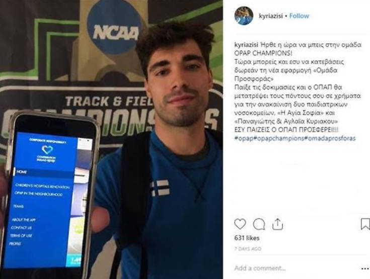 Οι ΟΠΑΠ Champions συμμετέχουν δυναμικά στην «Ομάδα Προσφοράς ΟΠΑΠ» για να συμβάλουν στην ανακαίνιση των παιδιατρικών νοσοκομείων «Η Αγία Σοφία» και «Παναγιώτης και Αγλαΐα Κυριακού». Οι νεαροί αθλητές έχουν δημιουργήσει τη δική τους ομάδα #OPAP CHAMPIONS στην εφαρμογή και, μέσω των social media, καλούν τους διαδικτυακούς τους φίλους να τους ακολουθήσουν και στην «Ομάδα Προσφοράς». Μέσω του app, τo οποίo μπορούν όλοι να κατεβάσουν δωρεάν στο κινητό τους τηλέφωνο ή tablet (Google Play και App Store), συμμετέχουν σε δοκιμασίες, που «ξεκλειδώνουν» σταδιακά. Όσο περισσότερο παίζουν, τόσο ο ΟΠΑΠ αυξάνει το ποσό που θα προσφέρει στην ανακαίνιση των παιδιατρικών νοσοκομείων. Δείτε τα μηνύματα των ΟΠΑΠ Champions για την «Ομάδα Προσφοράς»: Παναγιώτης Τριβυζάς – Τρέξιμο 60μ., 100μ., 200μ.