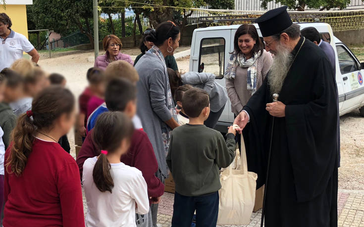 Με τη στήριξη του Διεθνούς Ανθρωπιστικού Οργανισμού των Ορθοδόξων Χριστιανών (IOCC), τη συνδρομή των Σεβασμιωτάτων Μητροπολιτών Μυθύμνης κ. Ιακώβου και Μυτιλήνης κ. Χρυσοστόμου, η «ΑΠΟΣΤΟΛΗ» και ο Γενικός Διευθυντής της κ. Κωνσταντίνος Δήμτσας διένειμαν σχολικές τσάντες με σχολικά είδη σε 600 παιδιά Δημοτικών σχολείων.